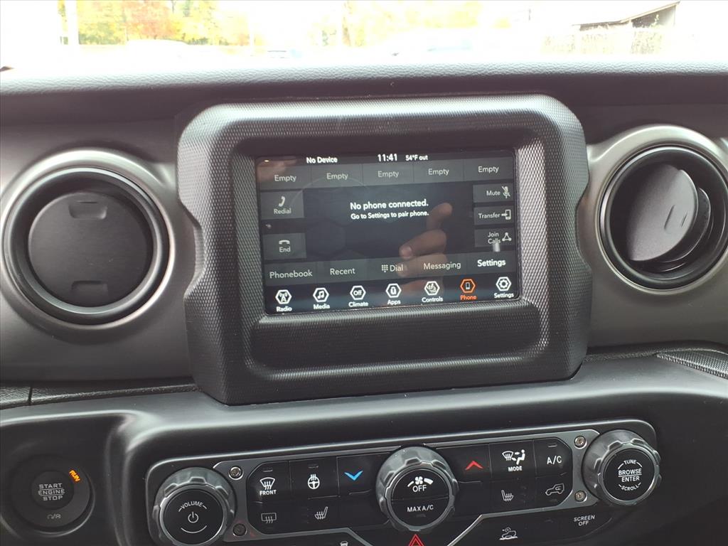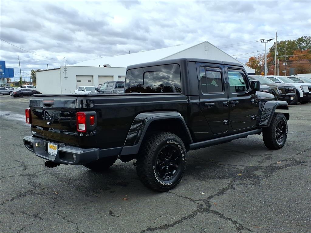 2022 Jeep Gladiator Willys 4WD 8-Speed Automatic Black Clearcoat Cold Weather Group (110 MPH Vehicle Max Speed Calibration), Convenience Group, Quick Order Package 24W Willys (Automatic Headlamps and Black Grille), Trailer Tow Package, 3.73 Rear Axle Ratio, 4-Wheel Disc Brakes, 8 Speakers, ABS brakes, Air Conditioning, AM/FM radio, Apple CarPlay, Apple CarPlay/Android Auto, Black 3-Piece Hard Top, Brake assist, Cloth Low-Back Bucket Seats, Compass, Corning Gorilla Glass, Delay-off headlights, Driver door bin, Driver vanity mirror, Dual front impact airbags, Dual front side impact airbags, Electronic Stability Control, Emergency communication system: SiriusXM Guardian, Front anti-roll bar, Front Bucket Seats, Front Center Armrest w/Storage, Front fog lights, Front reading lights, Google Android Auto, GPS Antenna Input, Integrated Center Stack Radio, Integrated roll-over protection, Integrated Voice Command w/Bluetooth, Low tire pressure warning, MOPAR Spray In Bedliner, Normal Duty Suspension, Occupant sensing airbag, Outside temperature display, ParkView Rear Back-Up Camera, Passenger door bin, Passenger vanity mirror, Power steering, Radio data system, Radio: Uconnect 4 w/7 Display, Rear anti-roll bar, Rear reading lights, Speed control, Split folding rear seat, Steering wheel mounted audio controls, Tachometer, Telescoping steering wheel, Tilt steering wheel, Traction control, Trip computer, USB Host Flip, Variably intermittent wipers, and Wheels: 17 x 7.5 Black Steel Styled. 3.6L V6 24V VVT